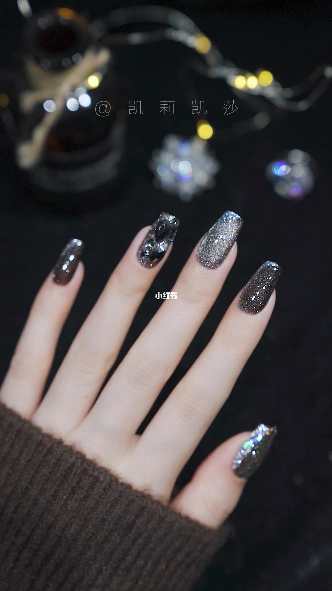 布灵布灵的黑色闪钻年会美甲来啦