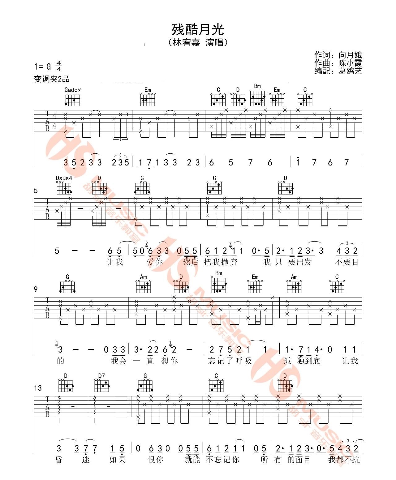 残酷月光吉他谱林宥嘉g调吉他图片谱2张