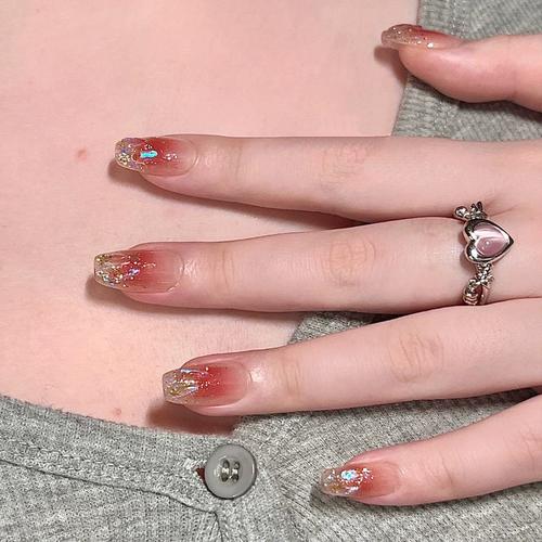 小红书穿戴甲中长款极光碎钻腮红指甲贴片爆闪美甲甲片果冻胶