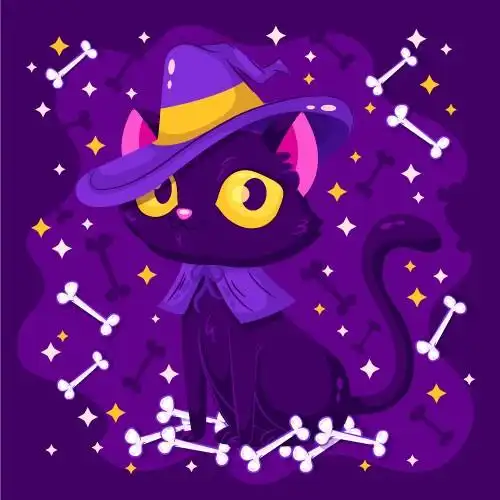 简约紫色女巫帽猫咪矢量素材