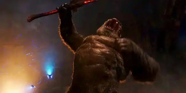 金刚被哥斯拉一顿胖揍,直到金刚找回自己的战斧后,才能与哥斯拉打上一