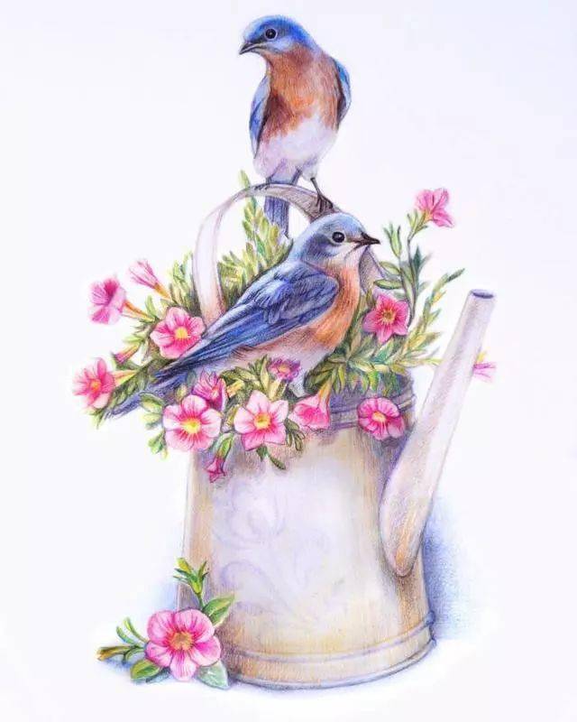 飞乐鸟 彩铅 唯美 好看 清新 花朵 彩铅