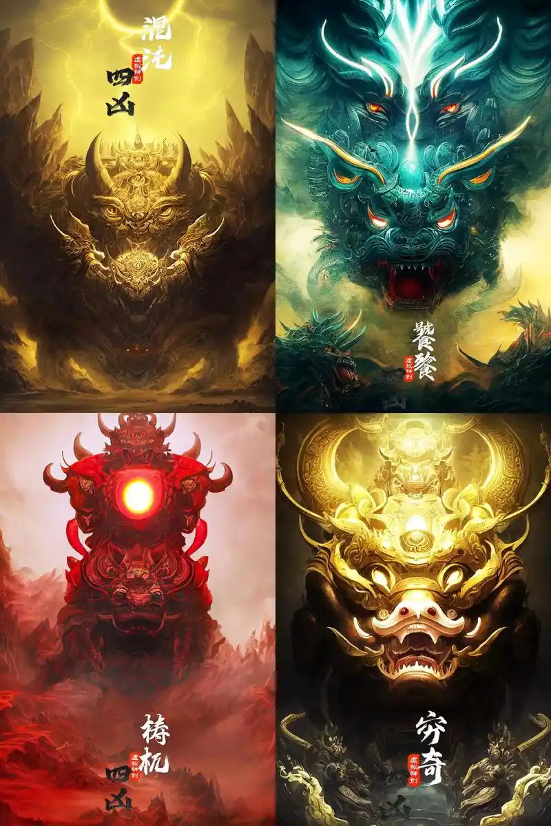 上古四大凶兽,混沌|饕餮|梼杌|穷奇 #ai绘画 #四大凶兽 - 抖音