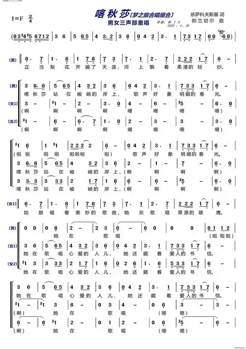 梦之旅三重唱歌谱
