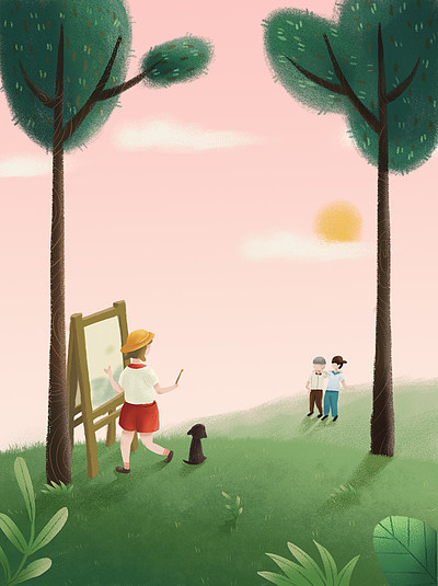 儿童节郊游郊外游玩绘画为小伙伴画画背景