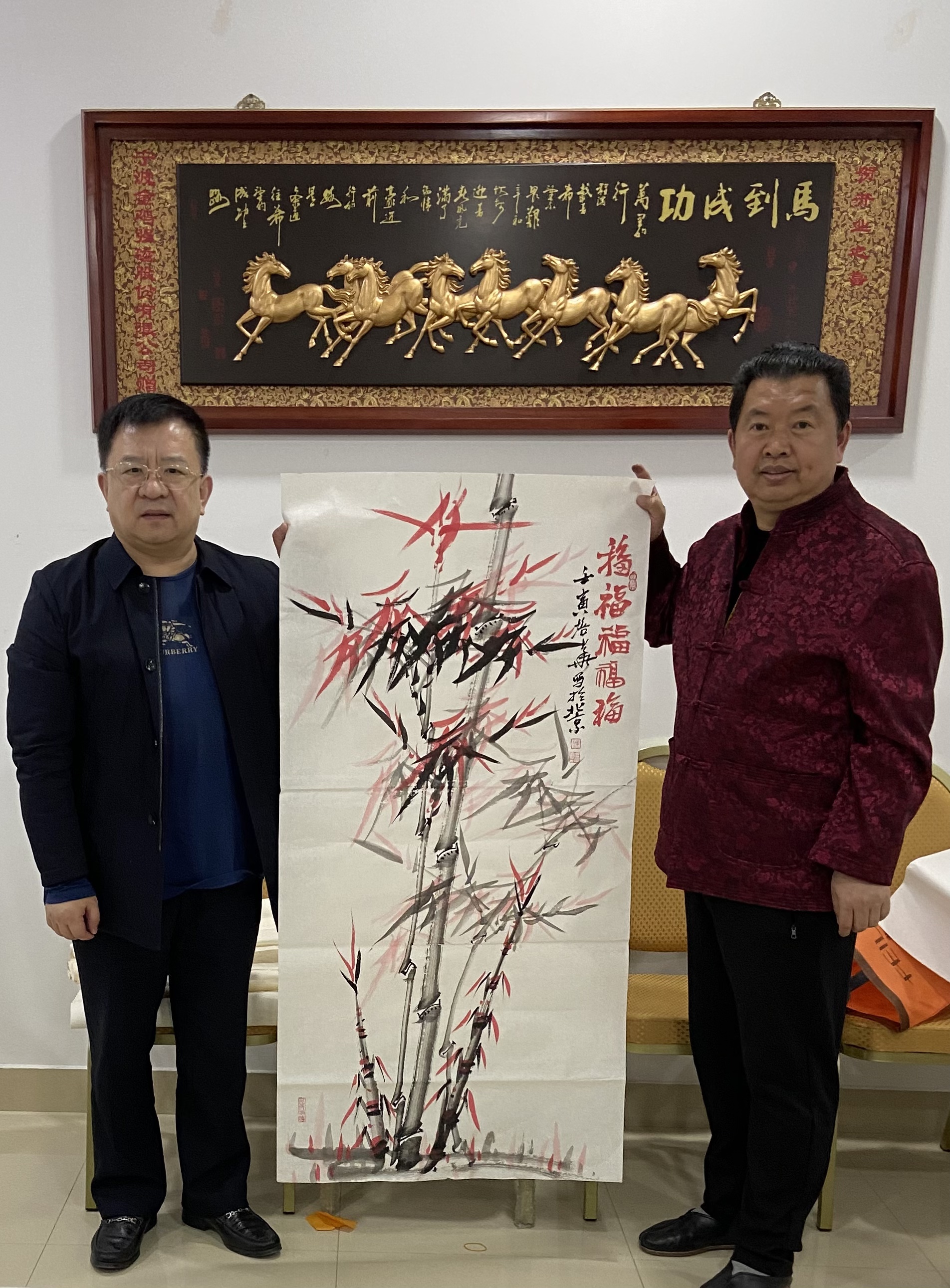 总裁联孚新能源汽车总裁张根发和视界书画院李根红院长合影总裁中华网