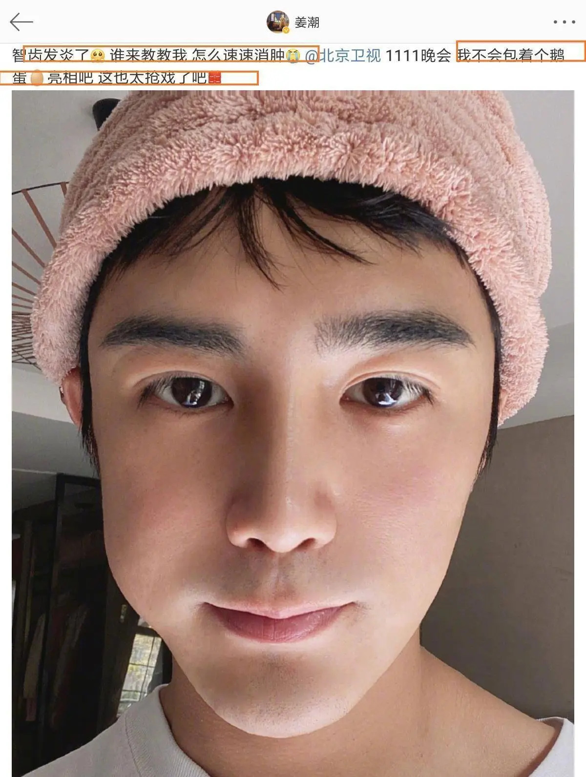 姜潮智齿发炎,肿成鹅蛋脸.