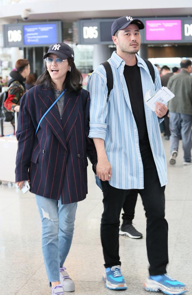 谭维维和老公现身机场,打扮帅气但素颜憔悴,老公络腮胡好帅