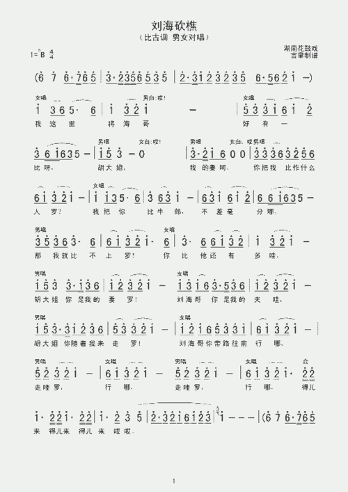刘海砍樵简谱歌谱乐谱湖南花鼓戏