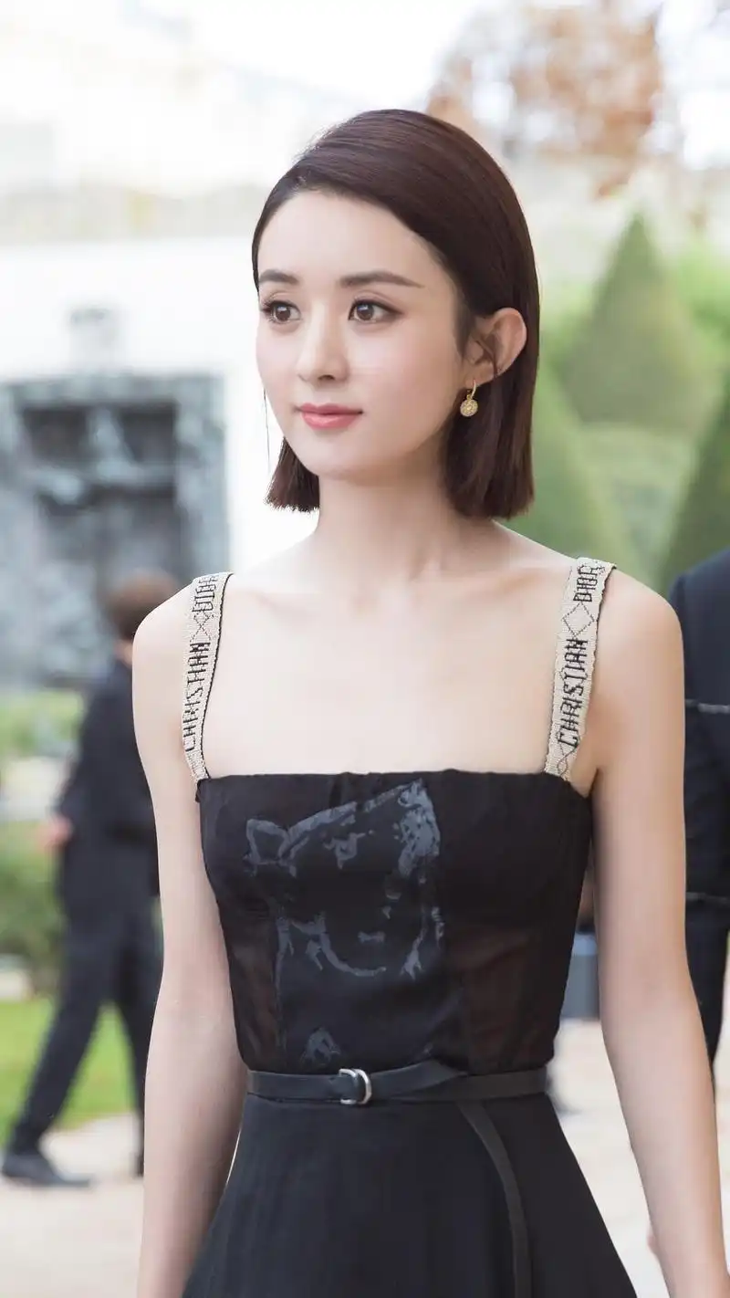 赵丽颖一袭抹胸长裙端庄优雅,盘发而立秀光滑美背