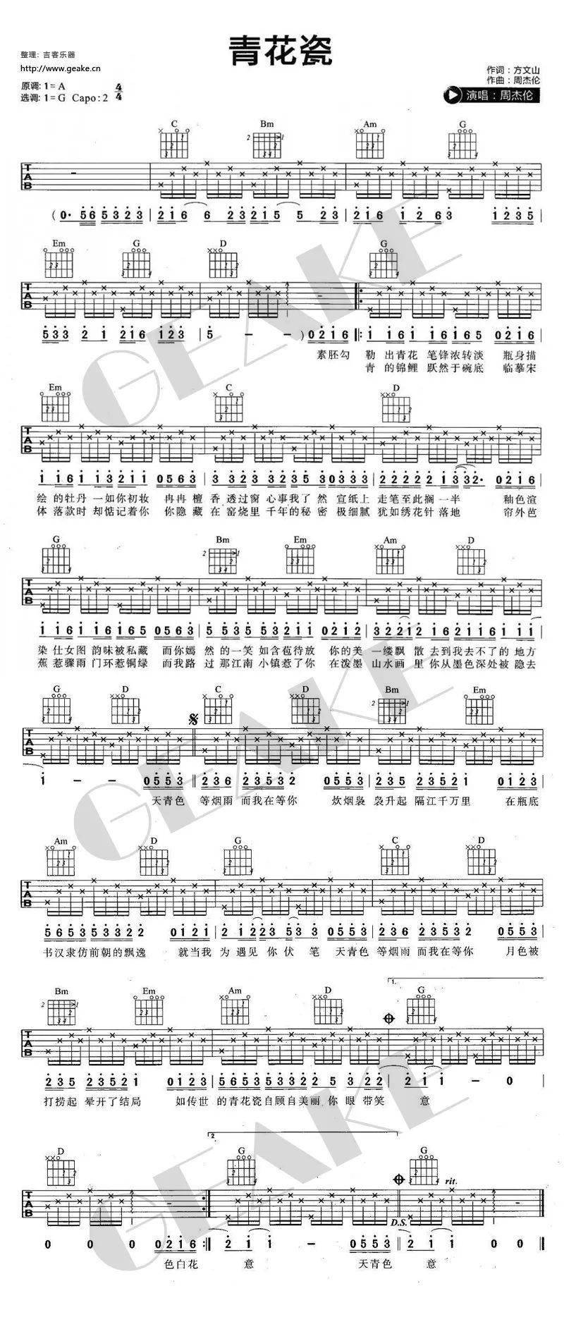 青花瓷吉他谱(pdf谱,木棉道琴行,新四合一吉他谱,弹唱)_周杰伦(jay