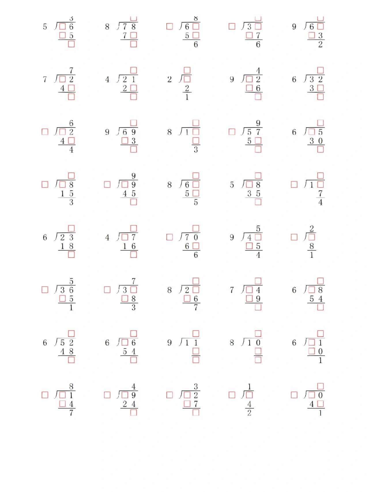 二年级下册有余数的除法竖式计算 列竖式的步骤:先写"厂"(除号),被