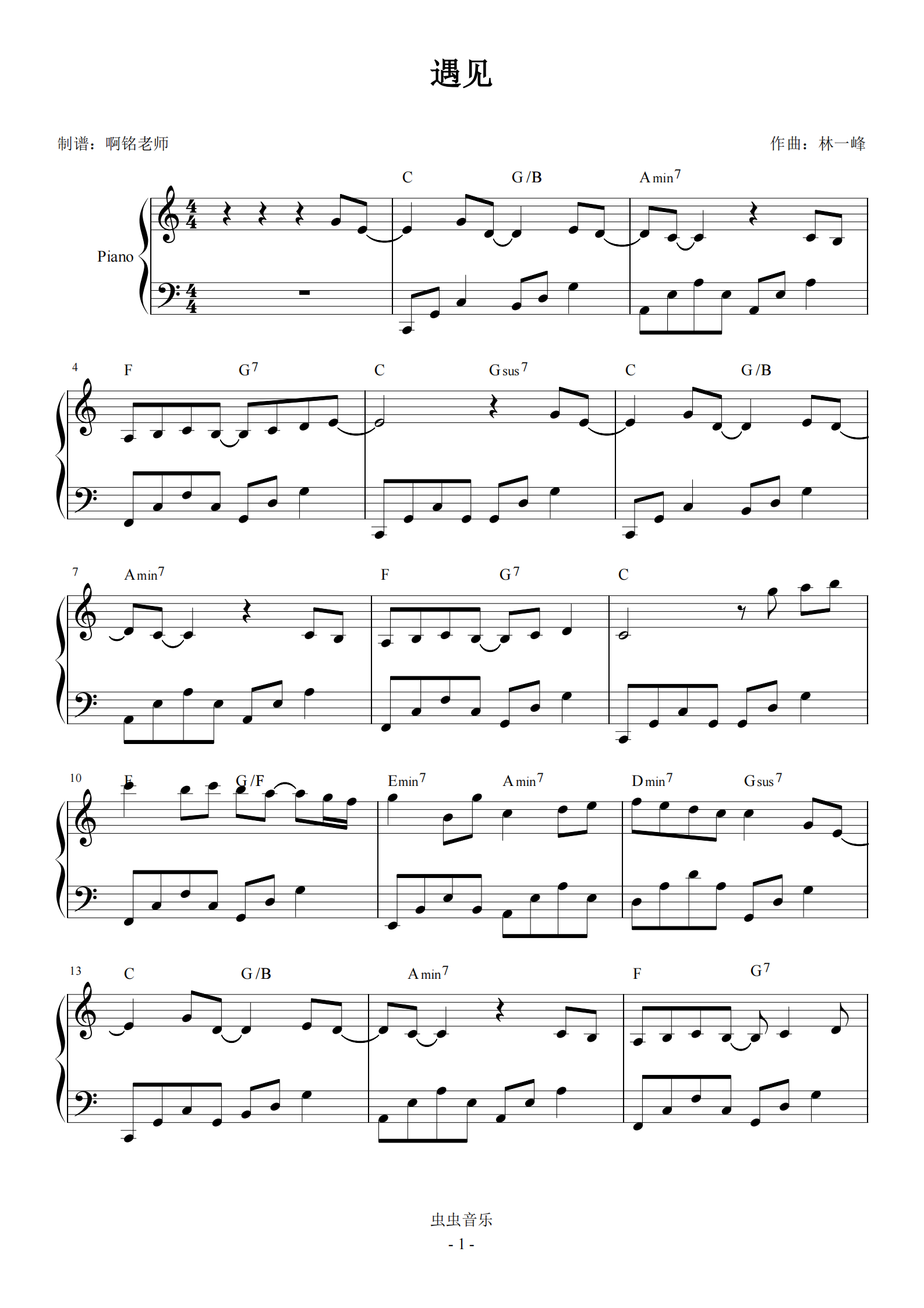 遇见钢琴谱-c调-虫虫钢琴