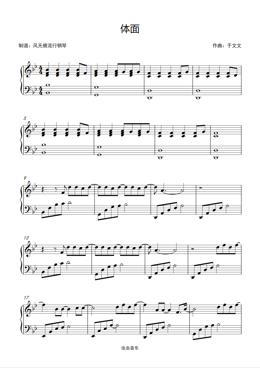 「琴谱|体面」-于文文-再见前任插曲(含简谱)