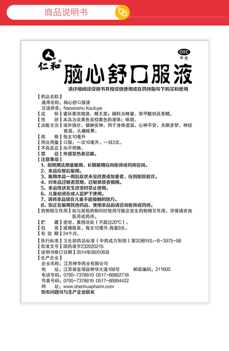 【一件包邮】 仁和 脑心舒口服液 9支价格_使用说明_参数_平安好医生