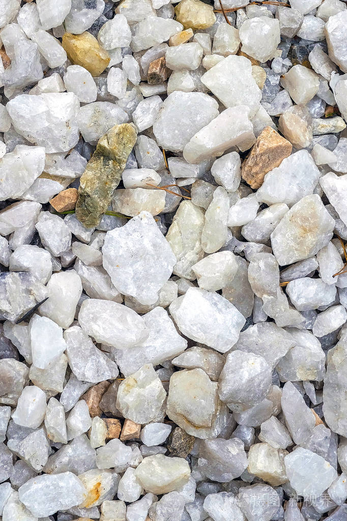 这是一个粉碎的白色石头的背景白色碎石砾石涂层轨道砾石的质地