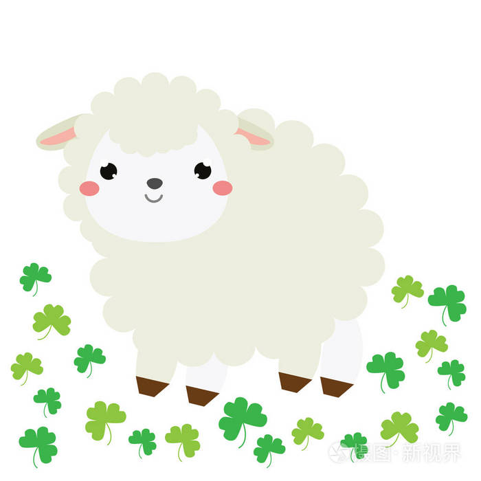 可爱的卡通羊羔羊. 为婴儿和儿童设计图案的农场动物特征
