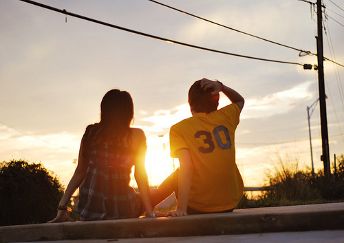 我想要几张情侣照,面朝大海和夕阳,但只看得到两个人的背面,最好是坐