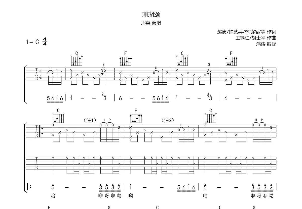 朱逢博珊瑚颂吉他谱c调吉他弹唱谱