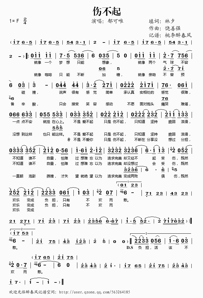 伤不起吉他谱