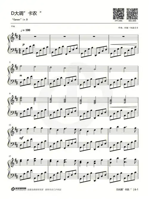 d大调卡农钢琴谱johannpachelbel