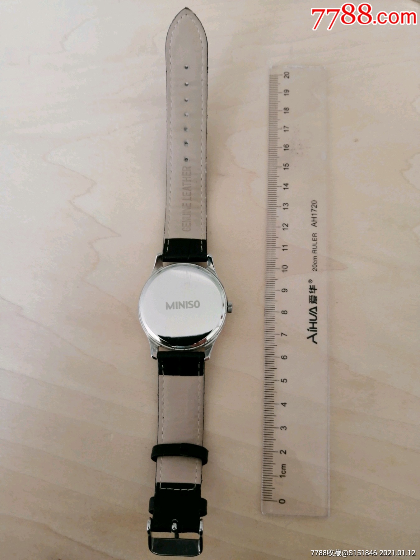 miniso名创优品2017年产电池石英手表一只运行功能完好皮表带背