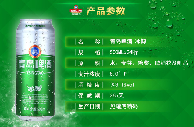 tsingtao青岛啤酒清爽8度啤酒500ml9罐