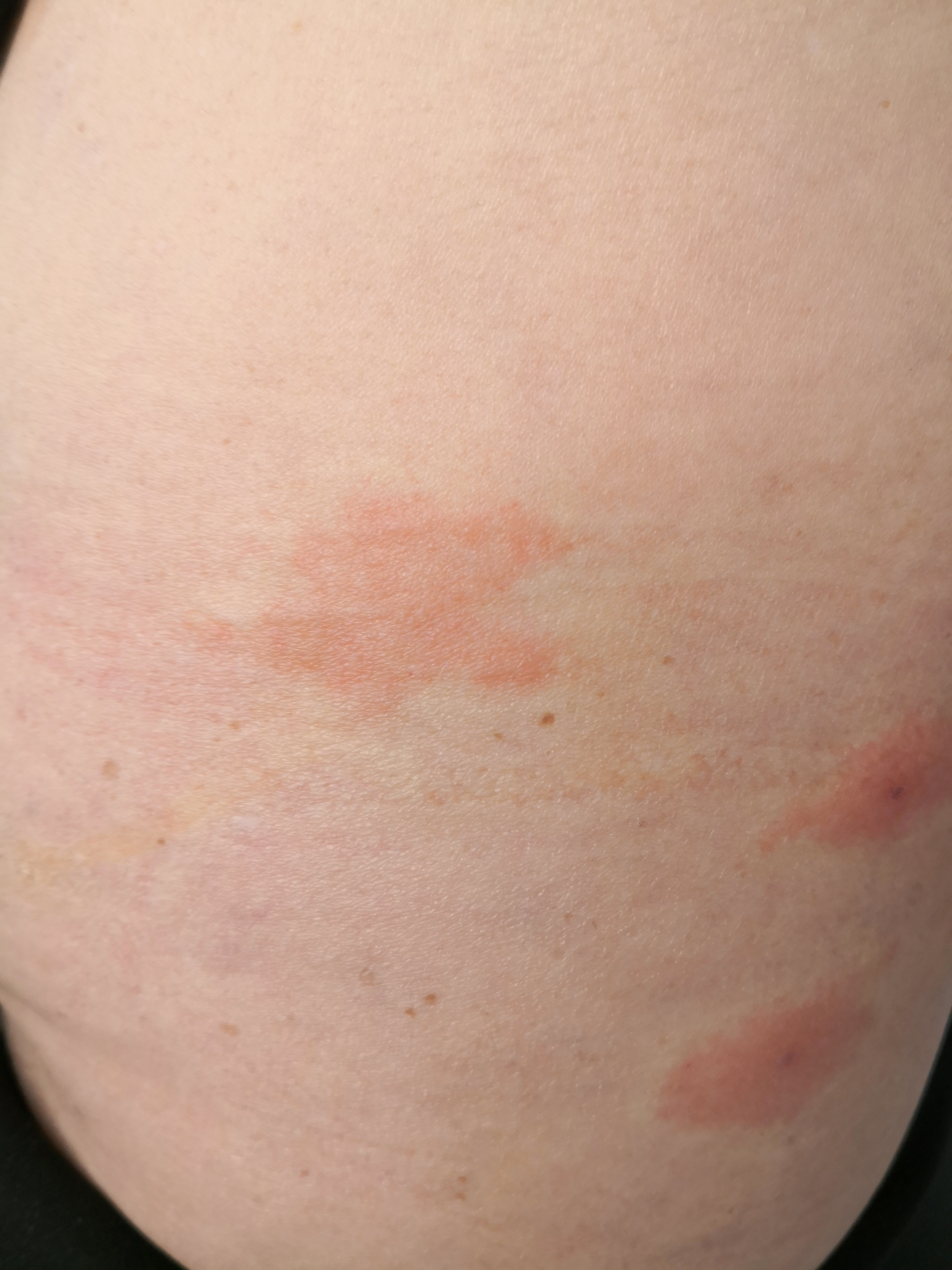 因肚皮,臀部及双下肢痛多天来就诊,初步判断是带状疱疹,嘱咐观察一