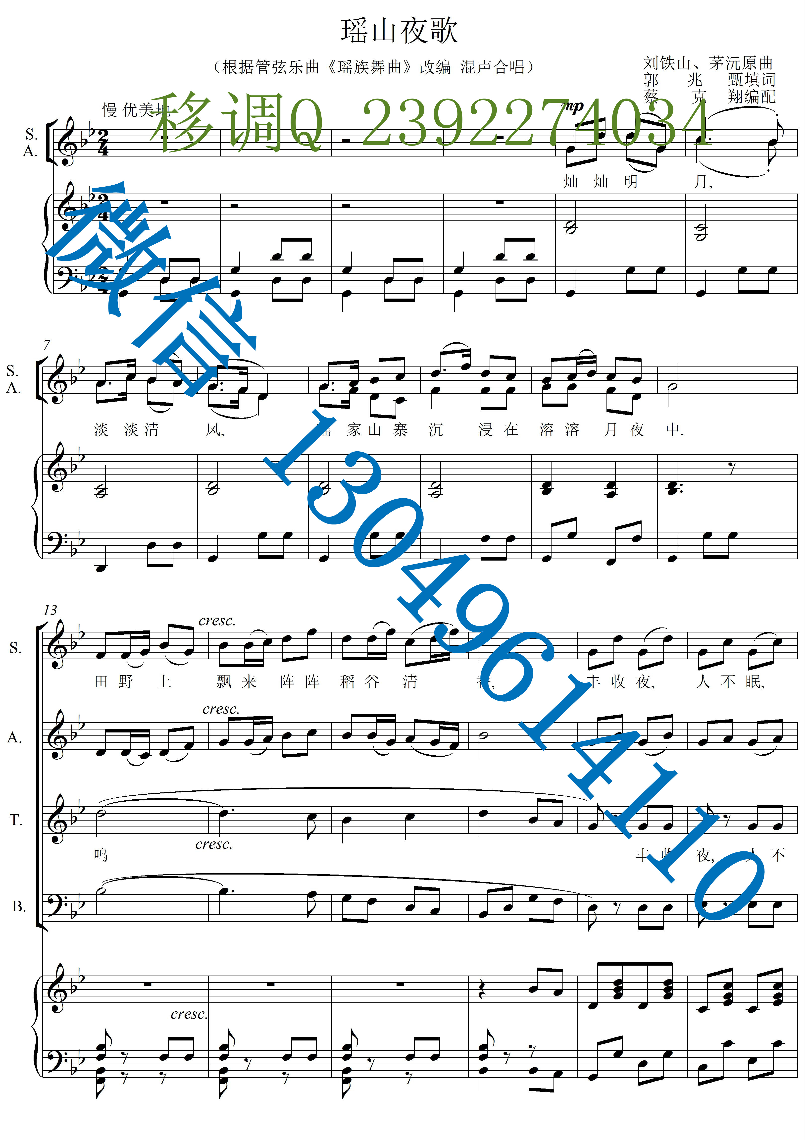 凤阳歌 混声合唱谱 五线谱 声乐正谱 钢琴伴奏谱 移调专业户 打谱专业