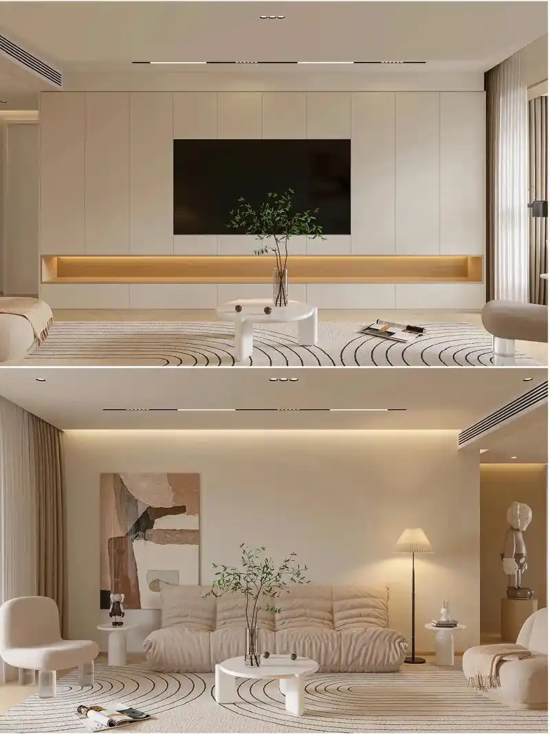 奶茶色温柔的奶油风客厅丨现代简约温柔小宅