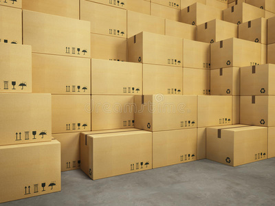 纸板箱创意货物 交付和运输物流存储仓库行业经营理念 群堆积瓦楞纸板