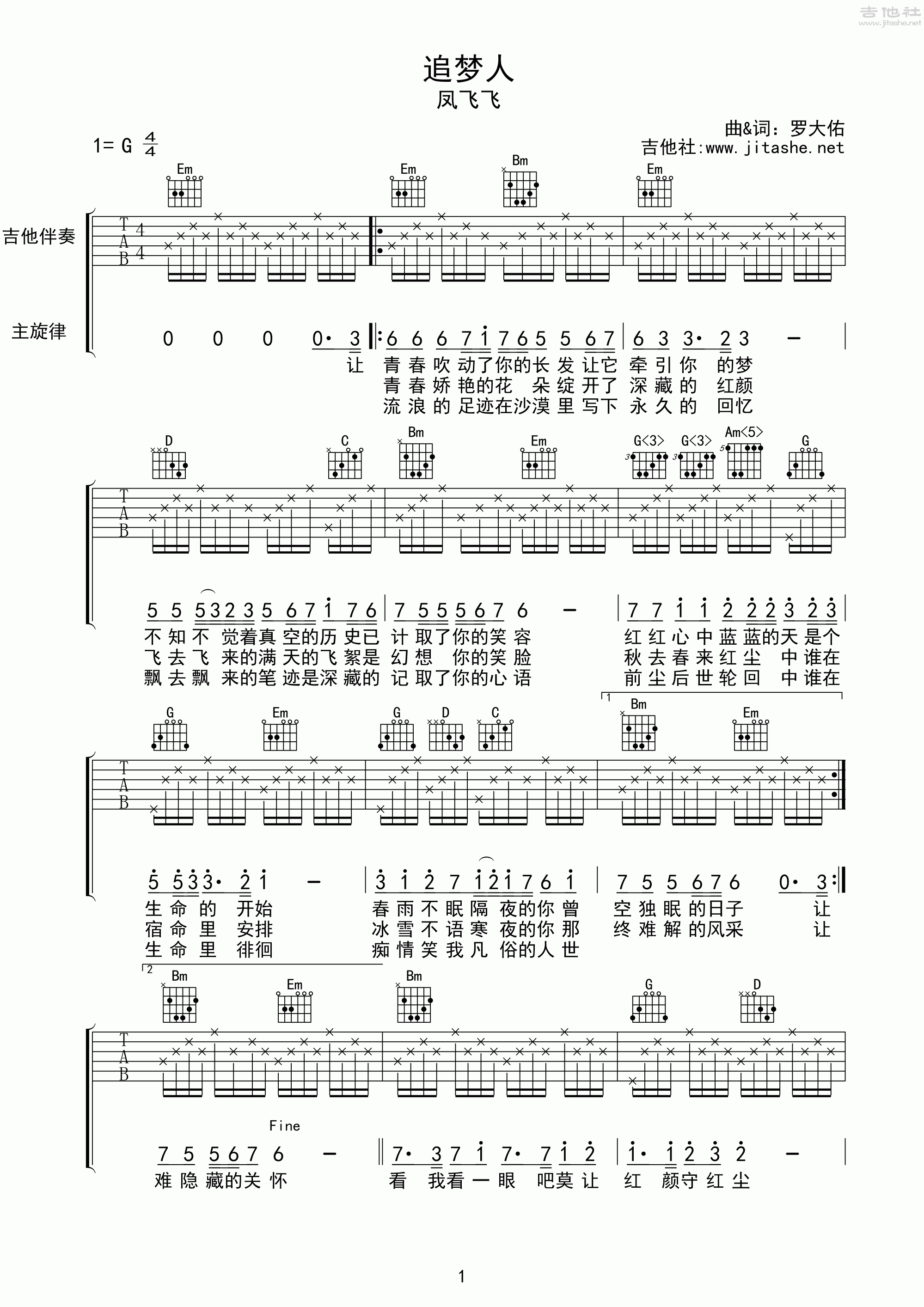 追梦人吉他谱(图片谱,弹唱)_凤飞飞_追梦人01.gif