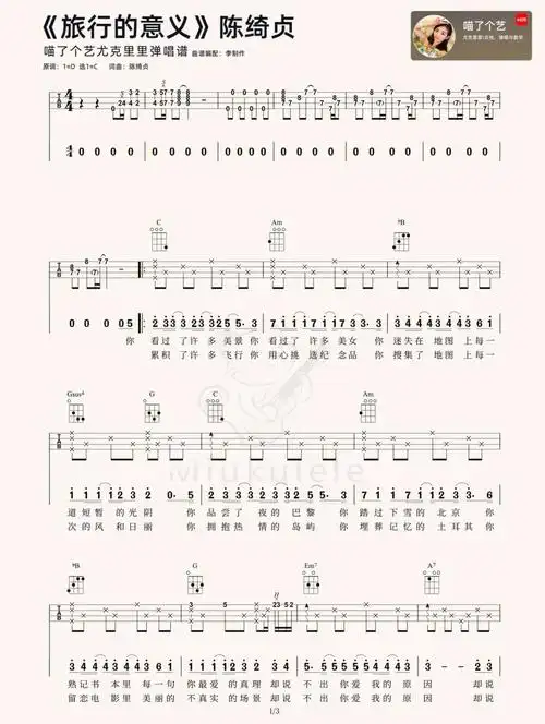 旅行的意义尤克里里谱_原版/简单版ukulele谱_弹唱视频教学