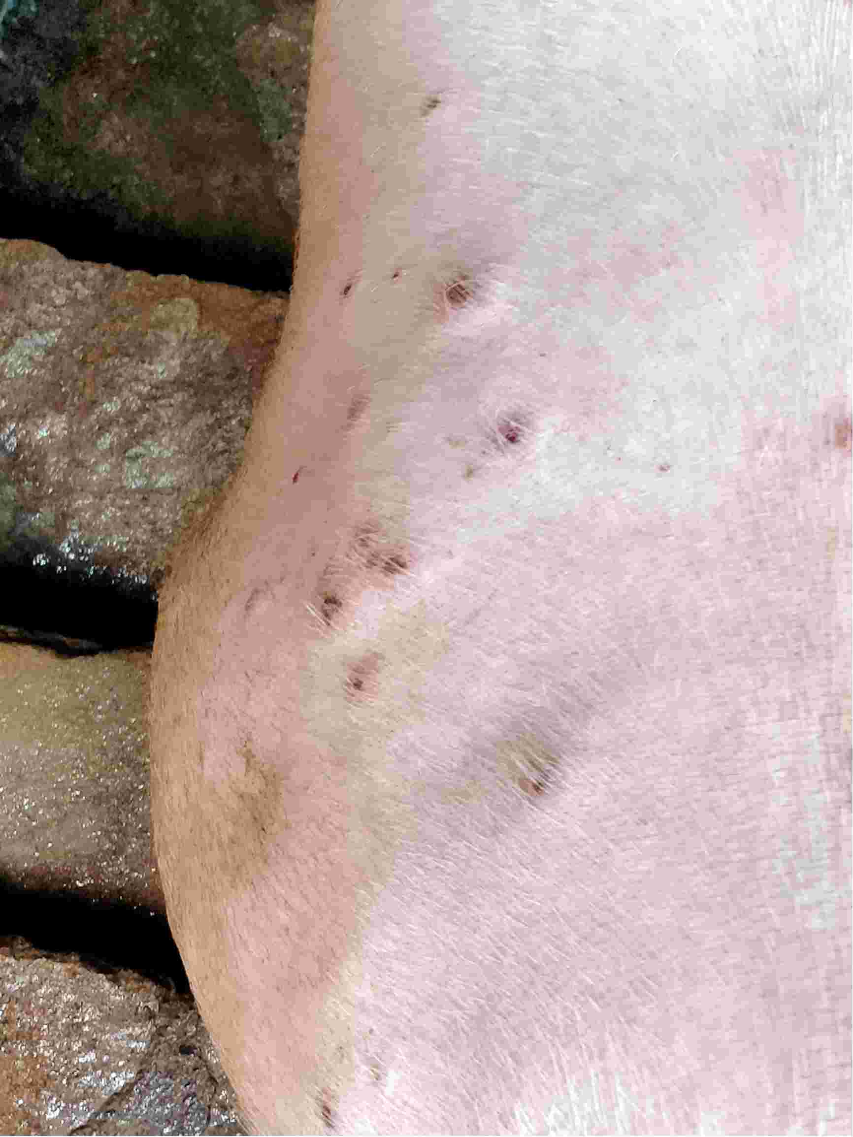 猪病治疗:育肥猪皮肤是红癍,如图,只是什么皮肤病如何治疗,求大神指点