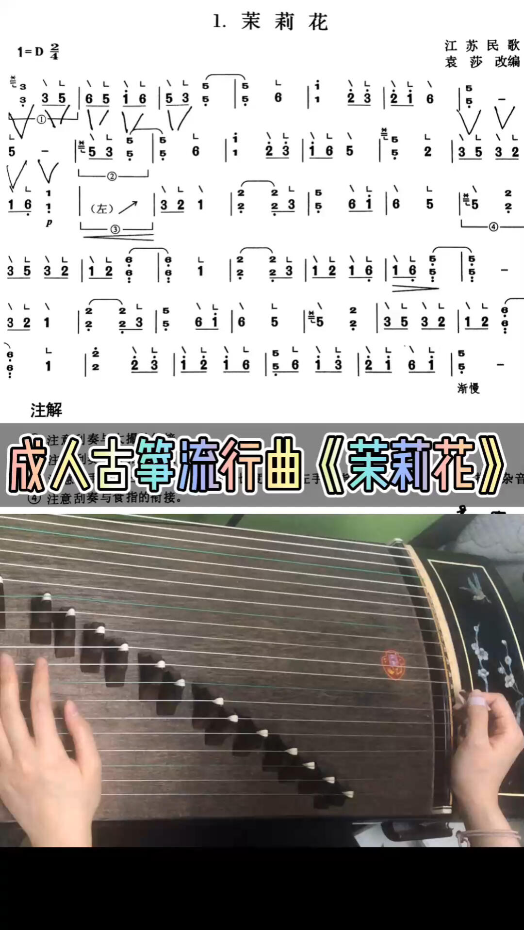 茉莉花(上下滑音练习乐曲)古筝谱-袁莎古筝谱-古筝曲谱-中国古筝网