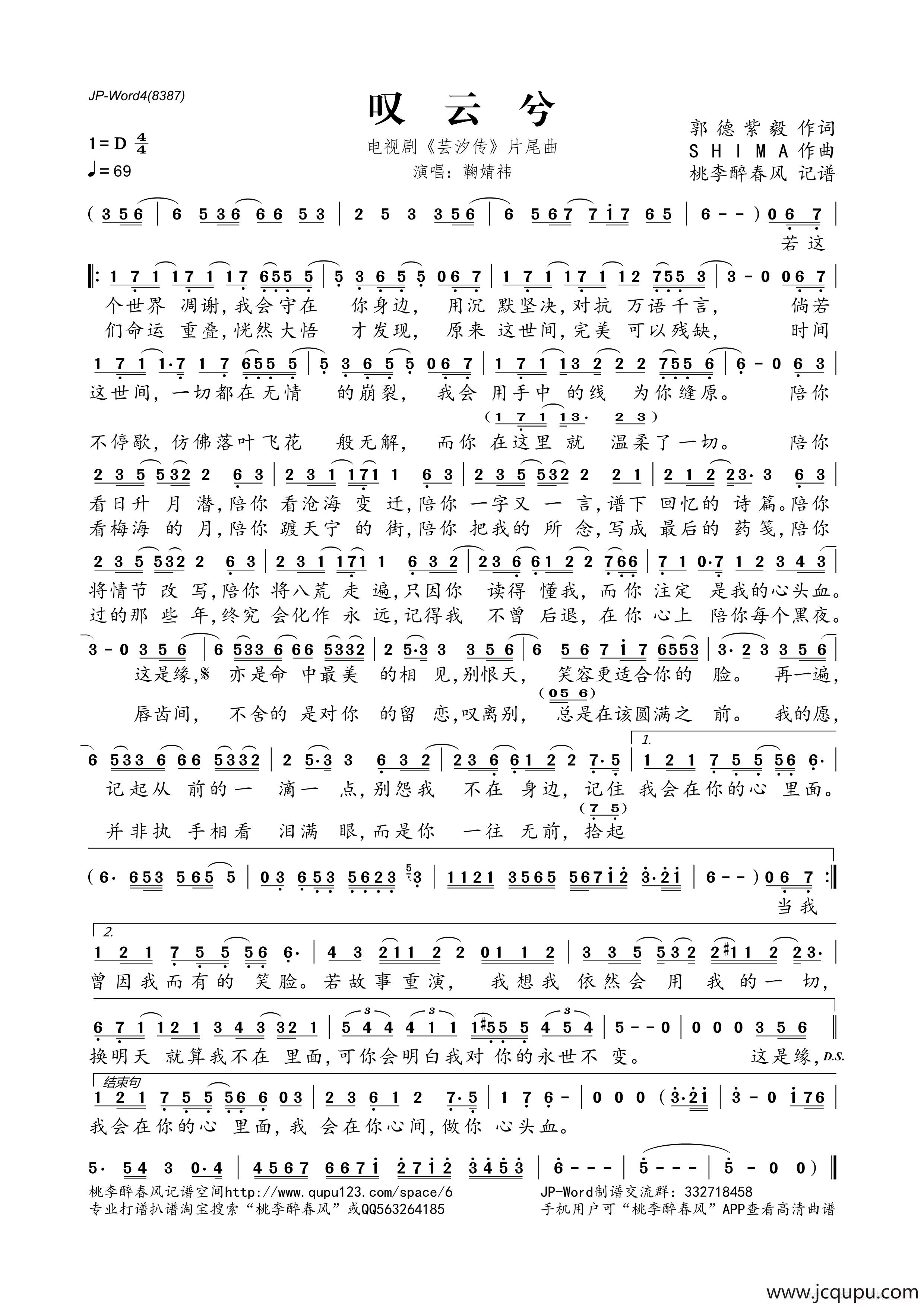 叹云兮电视剧芸汐传片尾曲
