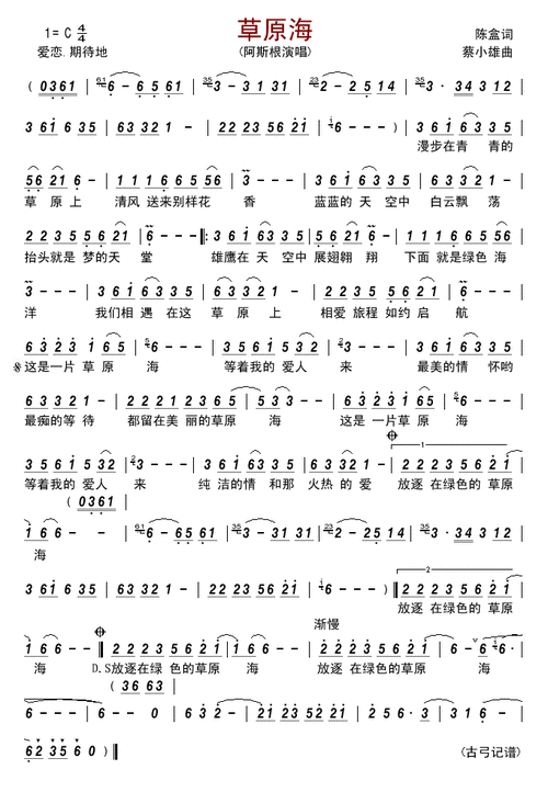 草原海(陈盒词 蔡小雄曲)简谱歌词