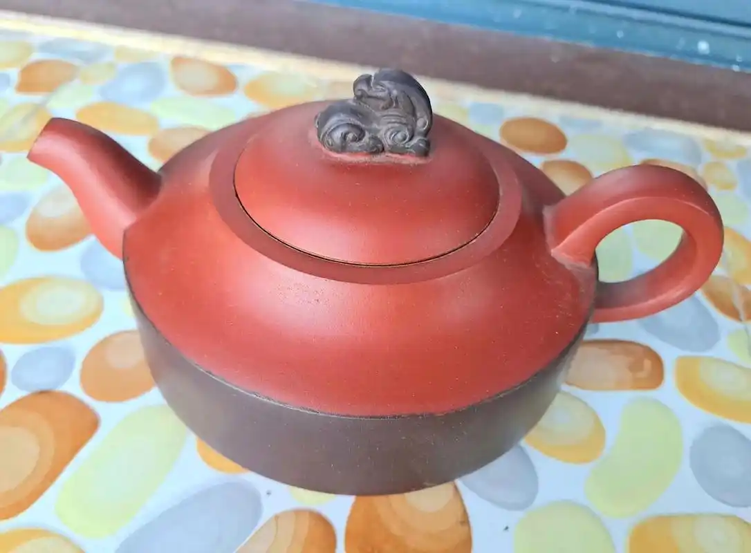 民国朱砂红老紫砂壶宜兴三个底款完好老民俗收藏饭店装修摆件包老