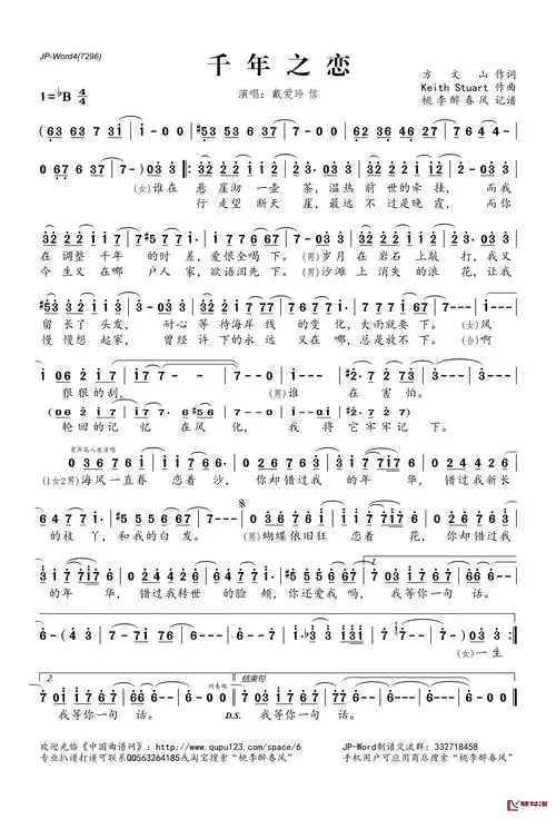 千年之恋(方文山词 keith stuart曲) 戴爱玲 歌谱简谱网
