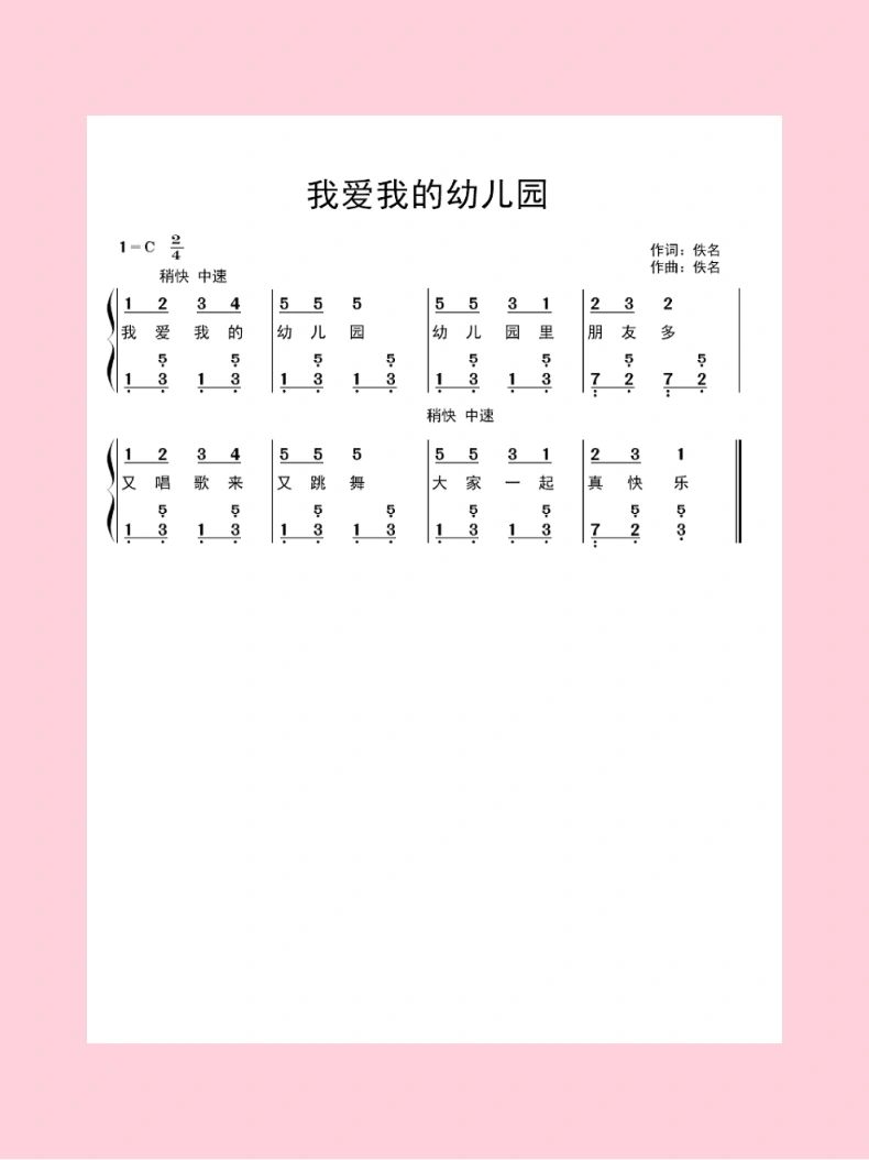 儿歌弹唱|《我爱我的幼儿园》简谱教资备考 每日不定时更新儿歌简谱