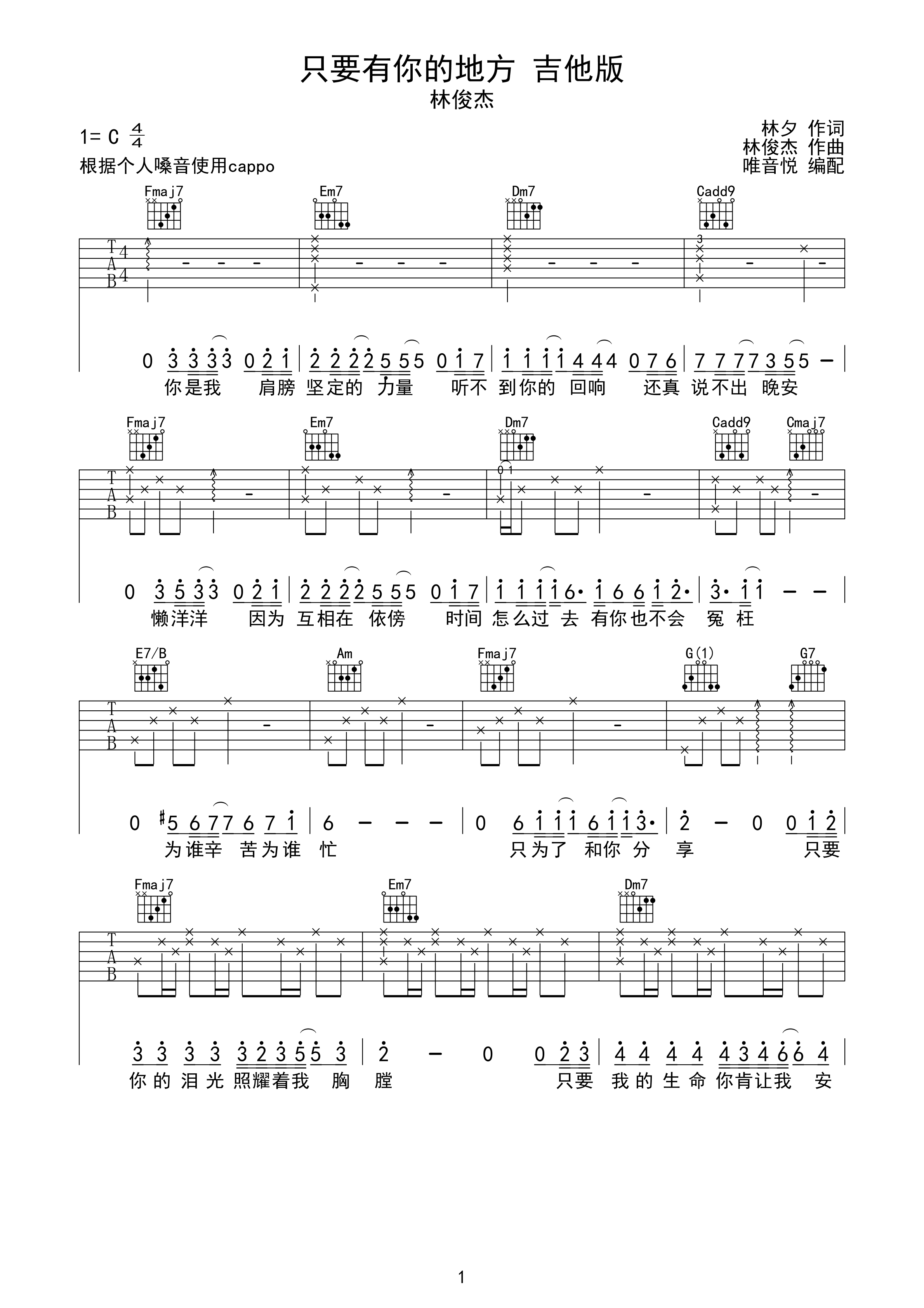 爱要怎么说出口吉他谱 c调_林俊杰翻唱版本_芃文音乐编配_李宗盛-看谱