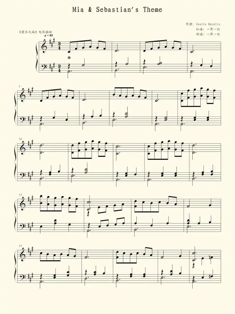 钢琴谱:《爱乐之城》插曲 《mia & sebastian - 抖音