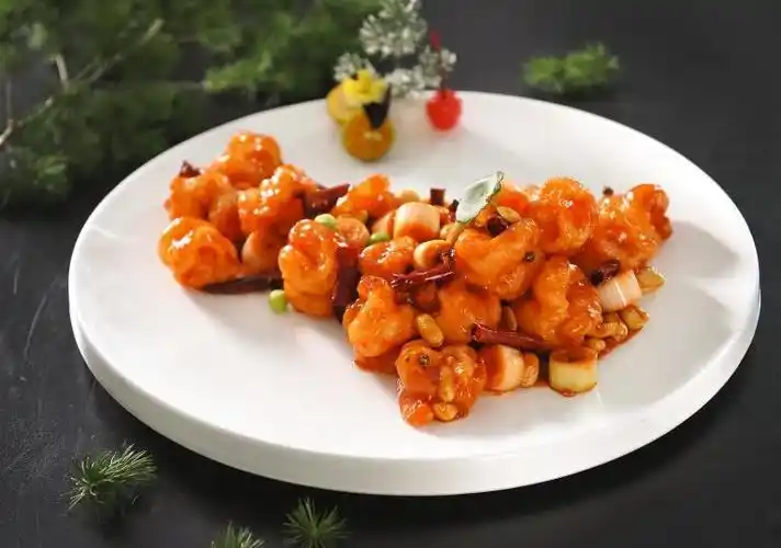 宫保虾球是一道融合了川菜和海鲜的美食佳肴.