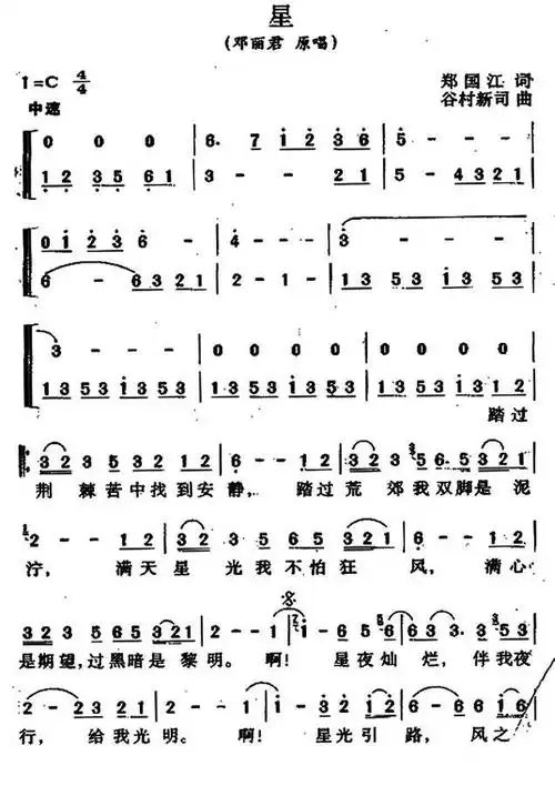 星 邓丽君 歌谱 简谱