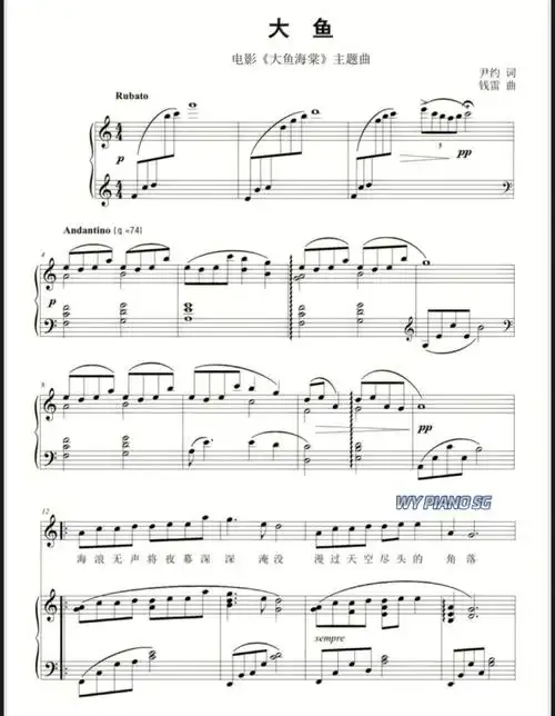 钢琴老师推荐八级大鱼周深琴谱分享