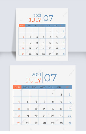简约2021年七月线框日历