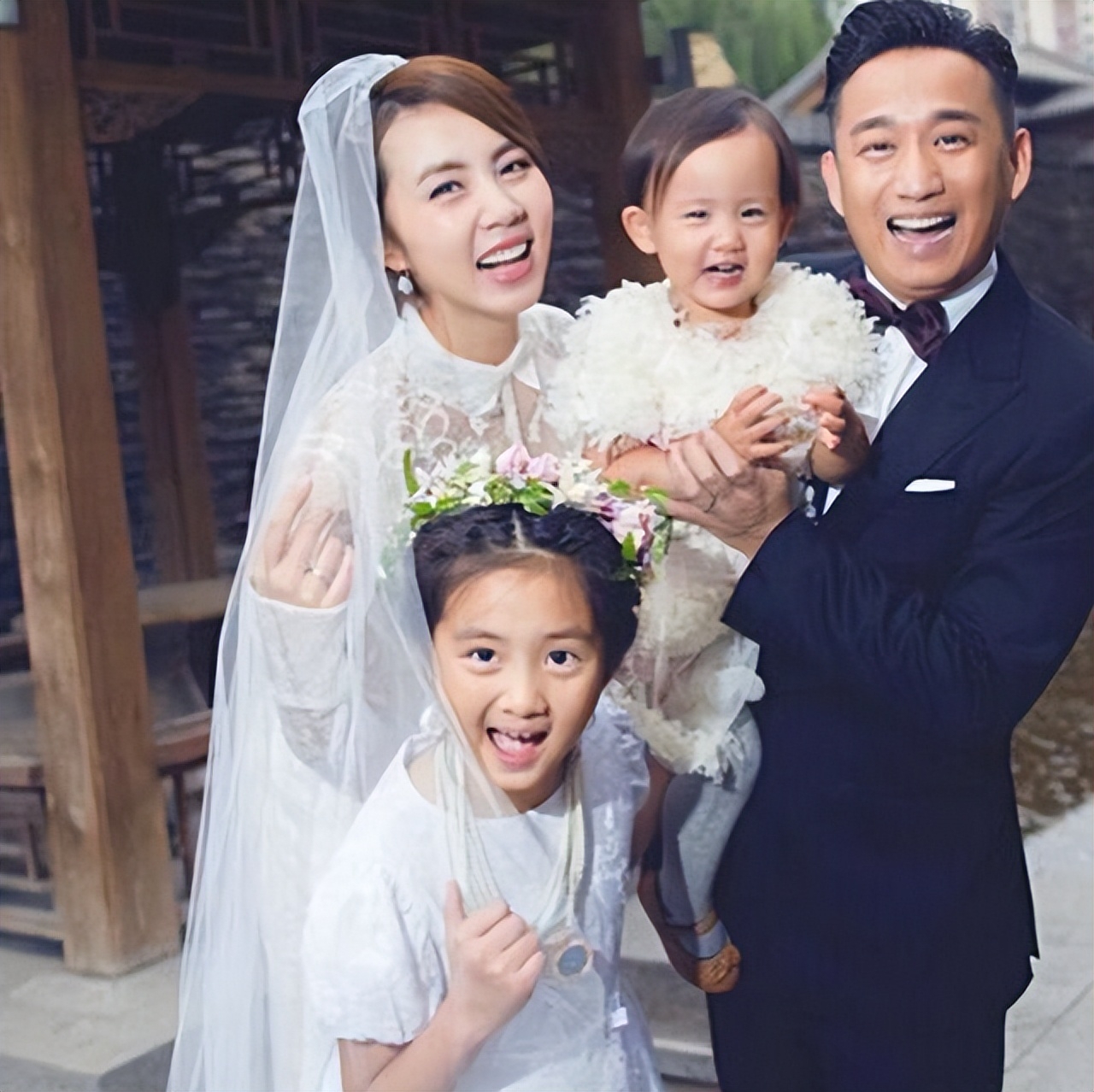 孙莉晒一家五口,三个儿女个个出众养眼,黄磊发福明显