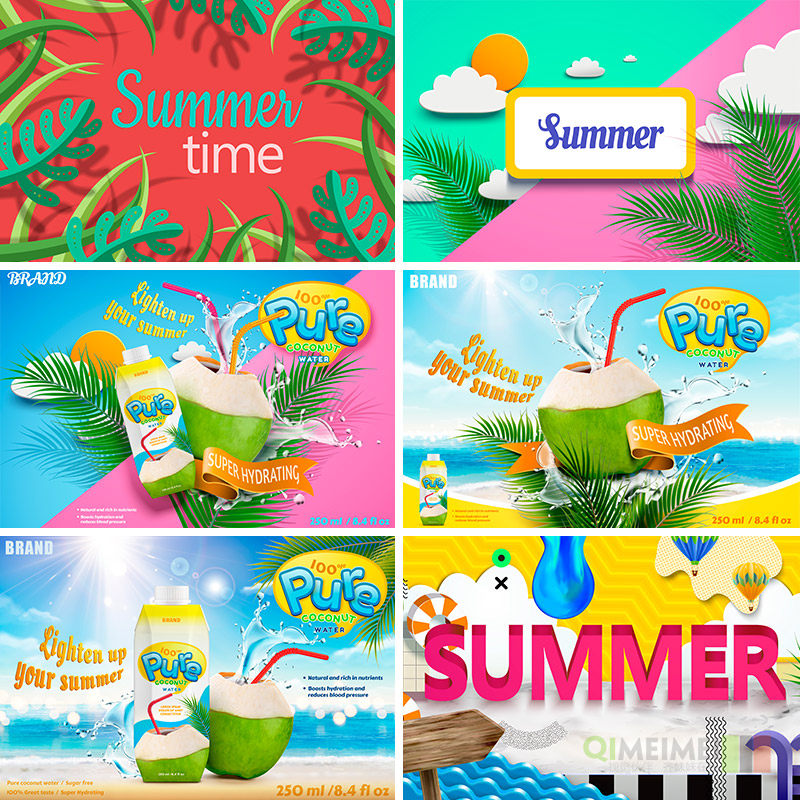 夏季热带元素冰镇饮料椰汁背景广告图海报矢量设计素材模板90301