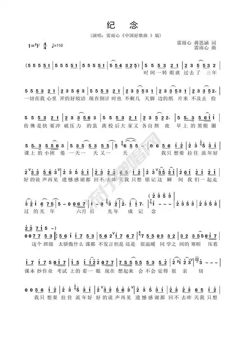 《纪念》简谱 马上毕业啦!这首歌极力推荐!