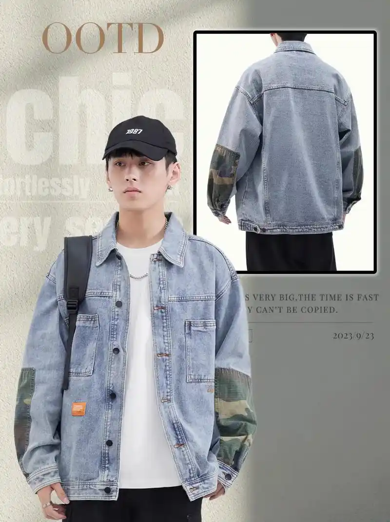 美式复古牛仔外套男潮流工装夹克宽松休闲潮牌上衣服潮 t2123-p85